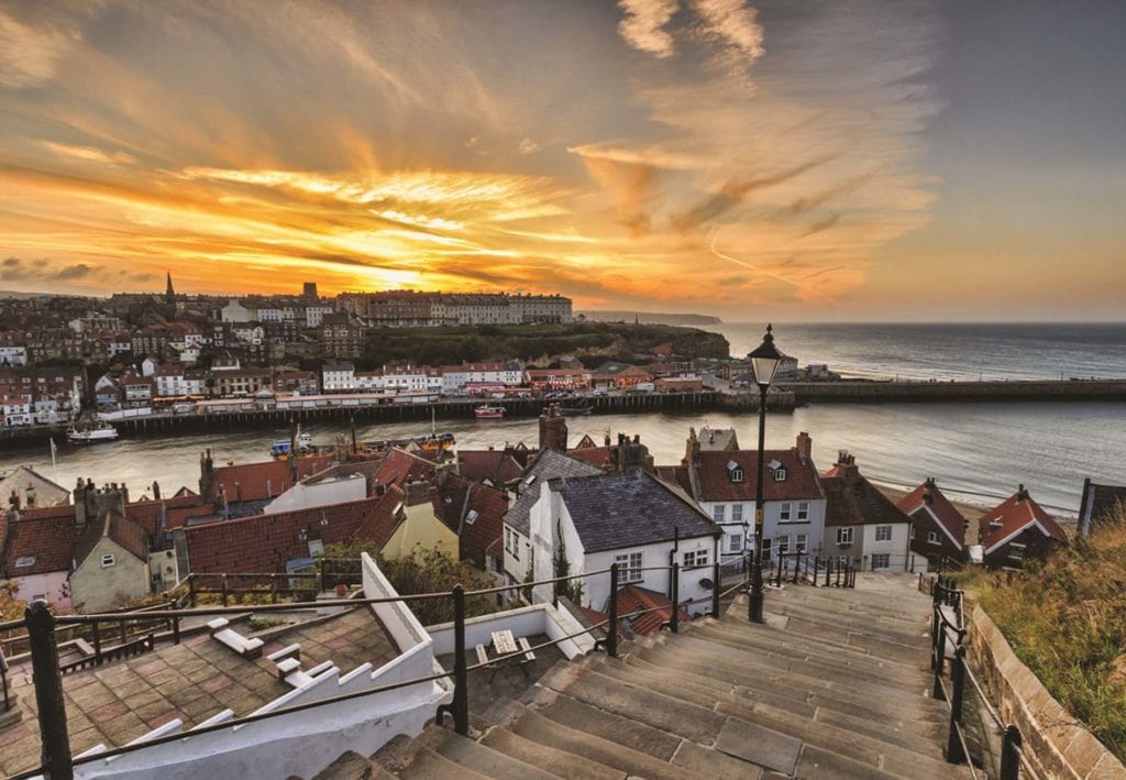 Am Morgen Fahrt in den an der Küste gelegenen North York Moors Nationalpark mit heidebedeckten Hügeln, karstigen Felsformationen und steilabfallenden Klippen – von Ravenscar, einem ehemaligen Fischerdorf, wandern Sie heute in die bekannte Robin Hood‘s Bay: Durch die abgelegene Lage war das Dorf einst ein Paradies für Schmuggler, heute gibt es hier kleine Künstlerateliers und einige Cafés (ca. 14 km) – anschließend Fahrt nach Whitby: In diesem klassischen englischen Seebad wurde James Cook zum Seemann ausgebildet und Bram Stoker schrieb seinen Roman „Dracula“; ein wunderbarer Ort, um in die englische Geschichte einzutauchen!