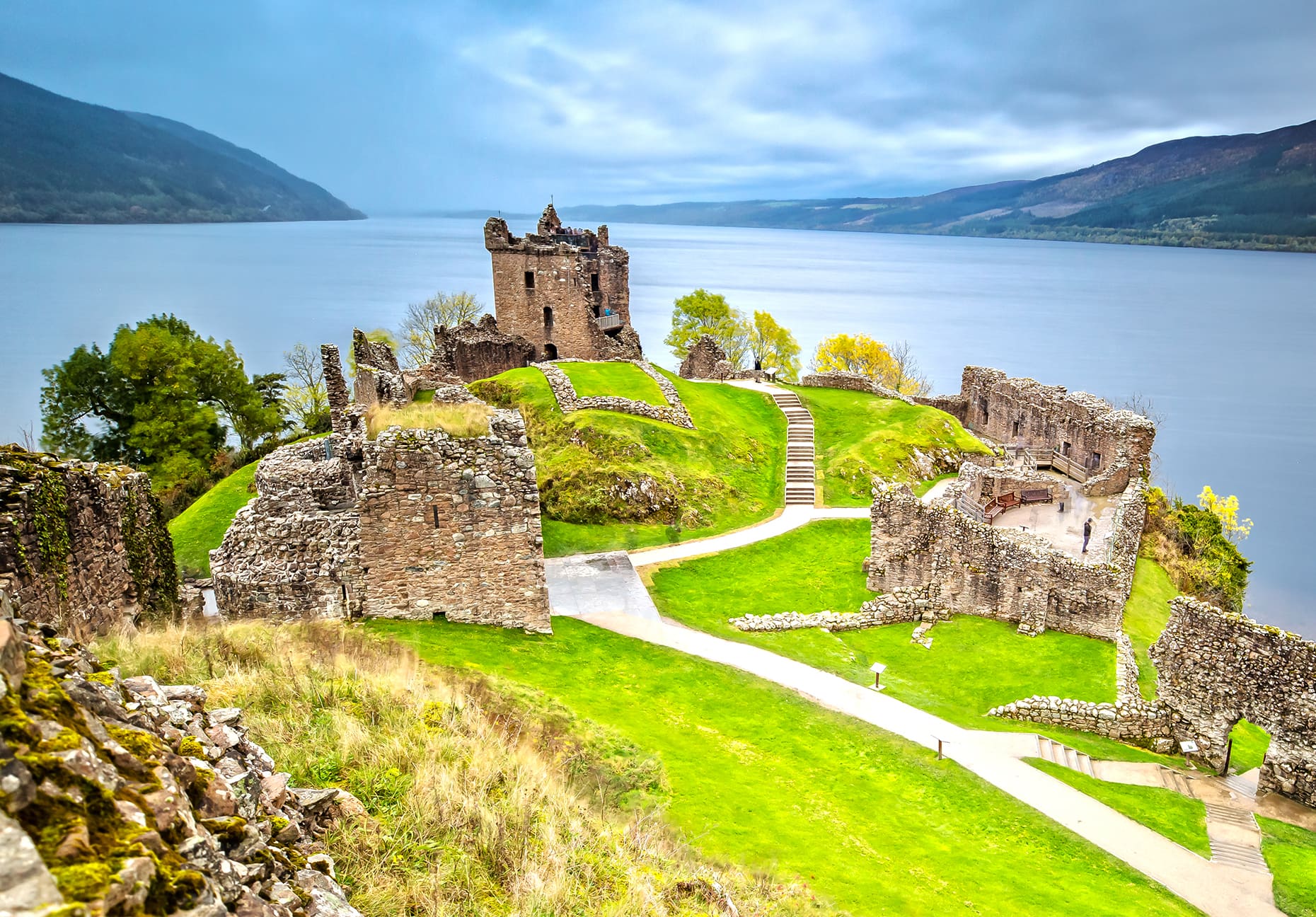 Café da manhã e saída rumo à calma vila de Luss, nas margens do Loch Lomond; o cruzeiro pelo lago é opcional, mas as paisagens do Ben Lomond são garantidas. Cruzando o Parque Nacional The Trossachs chegamos à simétrica Inveraray, onde fica a mansão ducal (entrada opcional). A jornada termina na costa oeste — Oban ou Fort William —, tendo as montanhas das Highlands como plano de fundo.Jantar e hospedagem em Oban/Fort William.