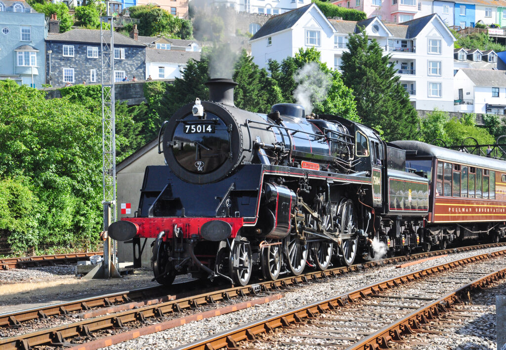 Pela manhã embarcamos no Dartmouth Steam Railway, cujo tem a vapor de época margeia estuários...